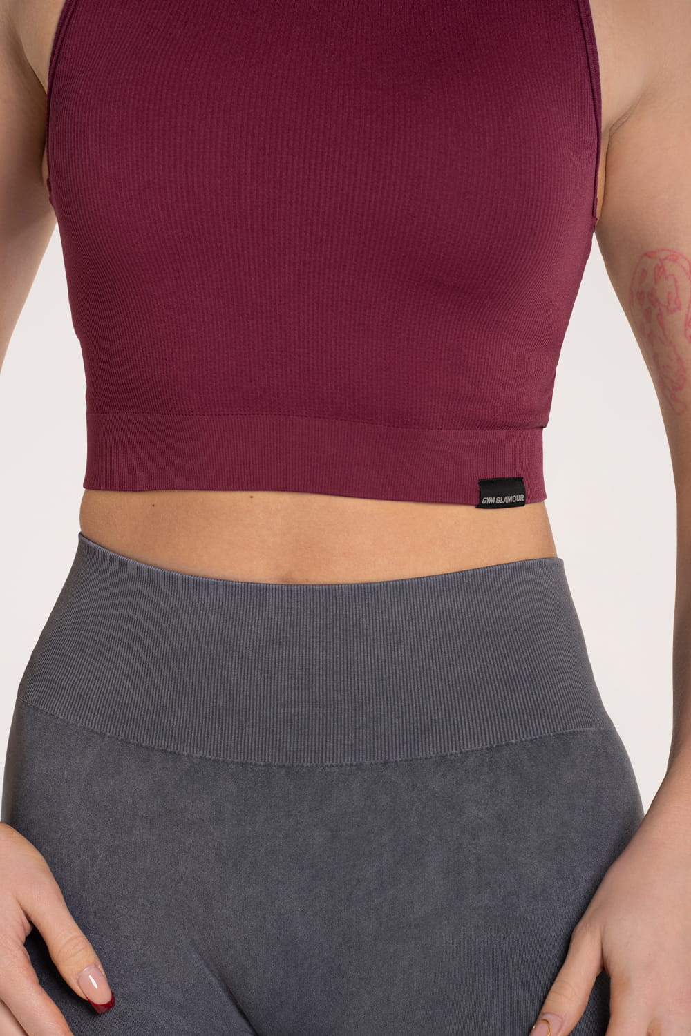 - Klasický top s minimalistickým logo Gym Glamour v podobe nášivky.