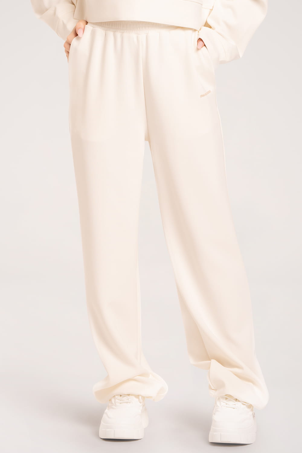 Nohavice širokého strihu vďaka praktickým nastaviteľným elastickým lemom sú kombináciou štýlu a komfortu. Vyrobené z mimoriadne mäkkého a priedušného prémiového materiálu s prídavkom modalu – ľahkého, príjemného na pokožku a odolného voči žmolkovaniu. Elastický pás s možnosťou dodatočného nastavenia zabezpečuje ideálne prispôsobenie každej postave. Pohodlné a praktické na každý deň.