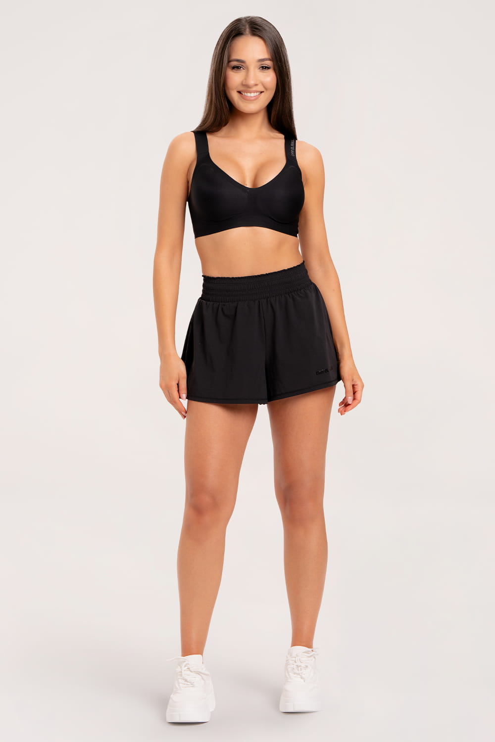 Dvojvrstvové šortky vytvorené s ohľadom na pohodlie a štýl. Široká a mierne priedušná vonkajšia vrstva im dodáva ľahkosť, zatiaľ čo priliehavé šortky pod nimi - s praktickým vreckom na telefón - zabezpečujú úplnú voľnosť pohybu. V páse je elastický pás a prídavné zaväzovanie, vďaka ktorému sa šortky dokonale prispôsobia postave. Vzhľad dotvára decentné priehľadné logo s jemným leskom.
