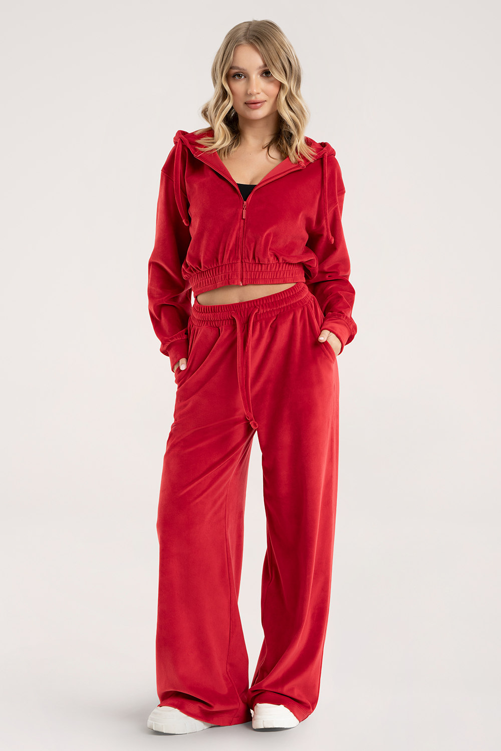 - Jemný lesk zamatového materiálu dodáva celku elegantný, loungewearový look