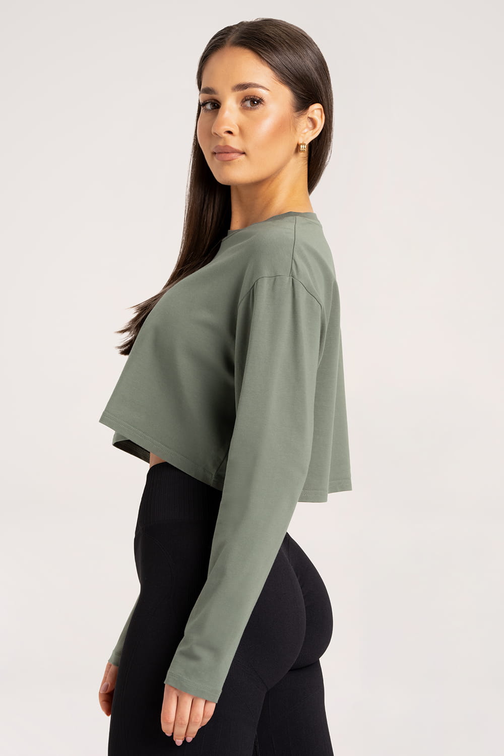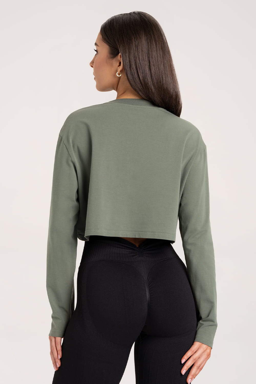 Tričko s dlhým rukávom a krabicovým strihom so skrátenou dĺžkou po pás. Vyznačuje sa voľným, pohodlným strihom a minimalistickým logom umiestneným v strede na hrudi. Dostupné v 7 farbách – ideálna voľba na tréning aj na bežné nosenie. K dispozícii je aj verzia s krátkym rukávom.